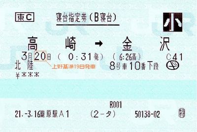 この前の19日(大宮発車)に寝台特急『北陸』号に乗ってきました。