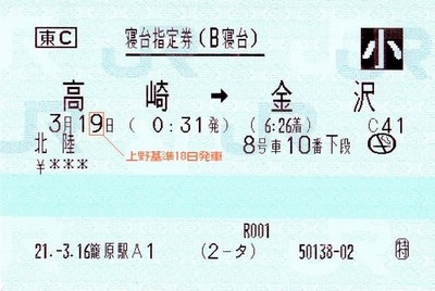 話を聞くと、自分たちが持っていた切符は高崎19日発車。つまり上野18日発車。