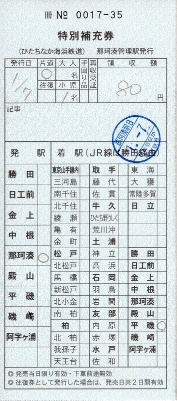 ここの那珂湊駅で補充券を売っているというので、迷わず購入してきました。