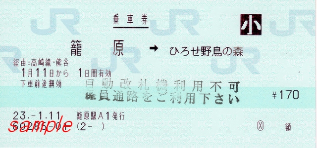 JR高崎線 籠原駅から、秩父鉄道線 ひろせ野鳥の森駅までの切符です。